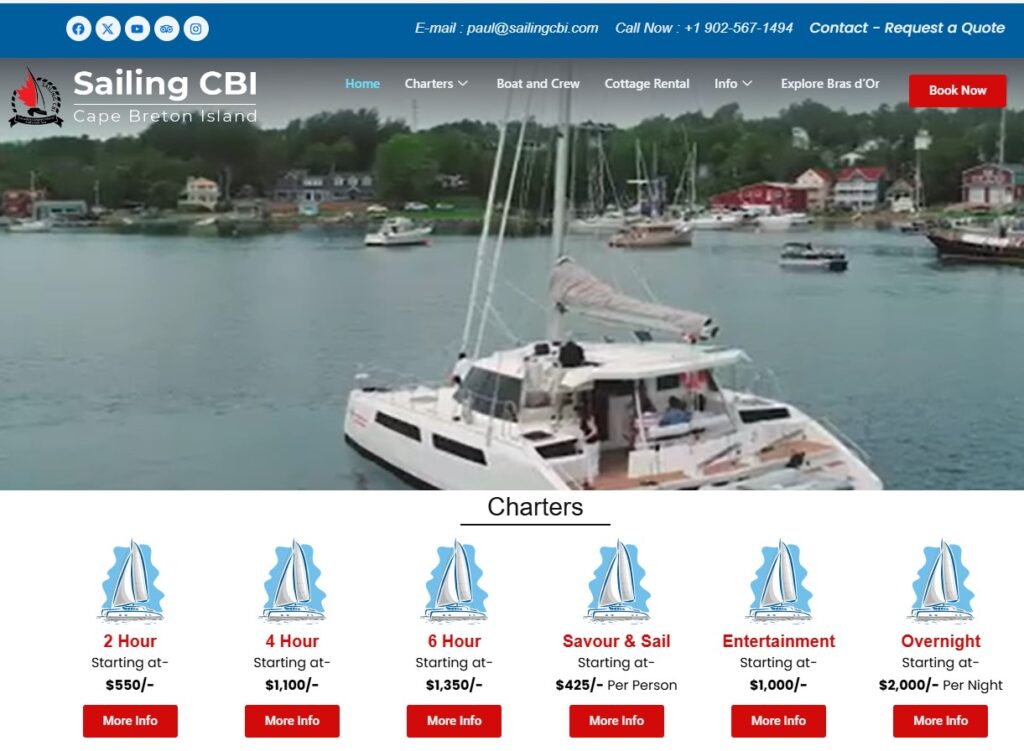 Set sail upon Canada's largest inland saltwater sea, the Bras d'Or Lake, aboard the Cape Bretoner 1 luxury catamaran.